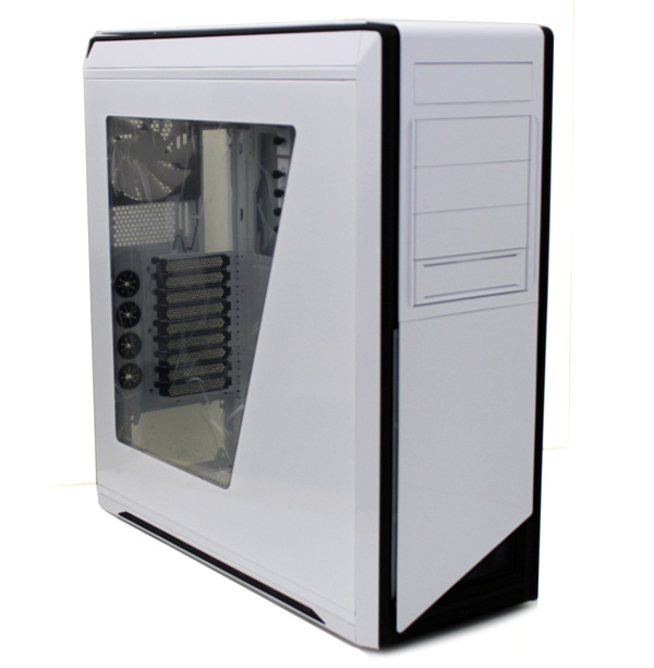 First up is the sleek, brushed aluminum Obsidian 550D. The 550D is a full tower case that comes with a ton of features. The case comes with two 120mm intake fans and one 120mm exhaust fan, but if you’re a cooling junkie and don’t mind a noisy rig, the case has room to house a whopping ten fans inside of it! And if you are running ten fans, you’ll also appreciate the case’s included noise-dampening panels. The 550D also includes tool-less drives and the standard audio and USB ports. This case can be yours soon, as it launches in February for $159.