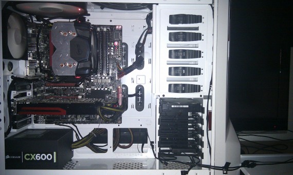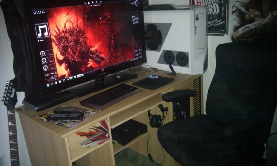 Considering it’s my first build with no previous PC building experience, I’m very proud with it. I know I’m using a TV as a monitor, I hope to change that when I can afford 2 at once, but for now, I quite like playing BF3 Ultra on a 42″ TV. *Evil grin* Took a while to get the whole build to where I wanted, quality-wise, but it was hella’ worth it.