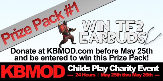 Starting at 9:00pm EST this Friday night, we will kick off a 24-hour live stream featuring all of us here at KBMOD, as well as some special guests throughout. Not only do we promise endless amounts of hilarity and entertainment, but you can also win some sweet prizes for helping us raise money towards a great cause. We’ll be giving away prizes every hour, including KBMOD swag, a Razer DeathAdder mouse, a crapload of rare TF2 items, and anything else we can find!