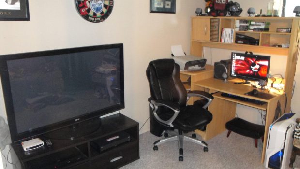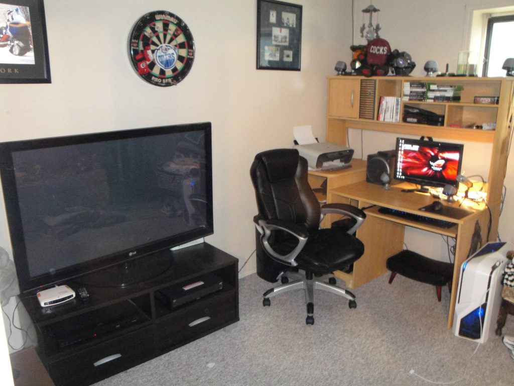 This week’s bro cave is using my personal favorite brand of case, the NZXT Phantom. Add to that a nicely overclocked 2500K and a bitching TV, and you’ve got a nice gaming setup for PC and consololol alike.