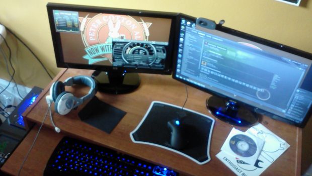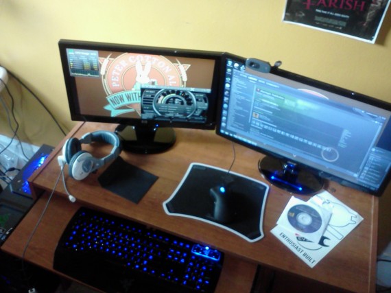 This week’s bro cave comes to us from Tim a.k.a. @Stafunoob, who has a clean dual monitor setup with a generous helping of blue LEDs.