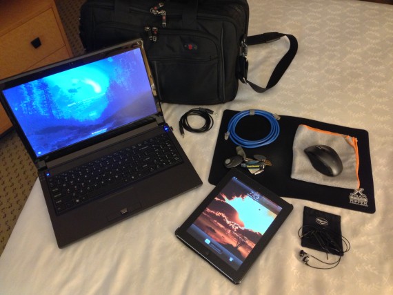- Apple iPad 3 – Mainly used for kicking back on the hotel room couch and reading Twitter or catching up on RSS feeds.