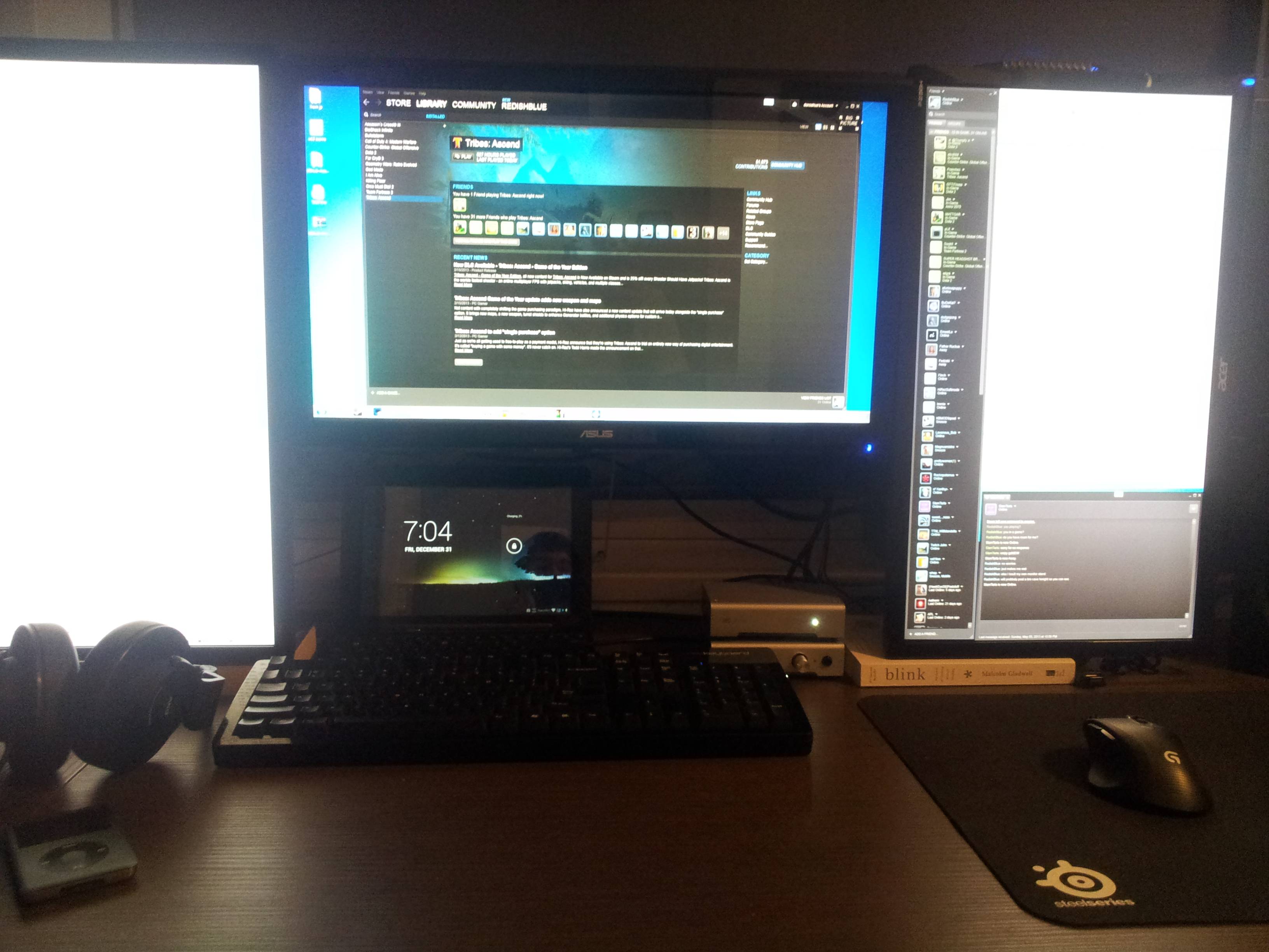 I also have a Lenovo Y580 for when I am out of the house and want to play a couple games of DOTA. Got it on sale and love the fact that it has a 1080p display instead of some pixelated laptop resolution. There is also an Asus Transformer under the display that I usually have twitter or a video playing on when I am at home. On the go it usually functions as an eBook or way for me to read my online textbooks. The only thing not in the shot worth mentioning is what I took the photos with which is a Samsung Galaxy Note.
