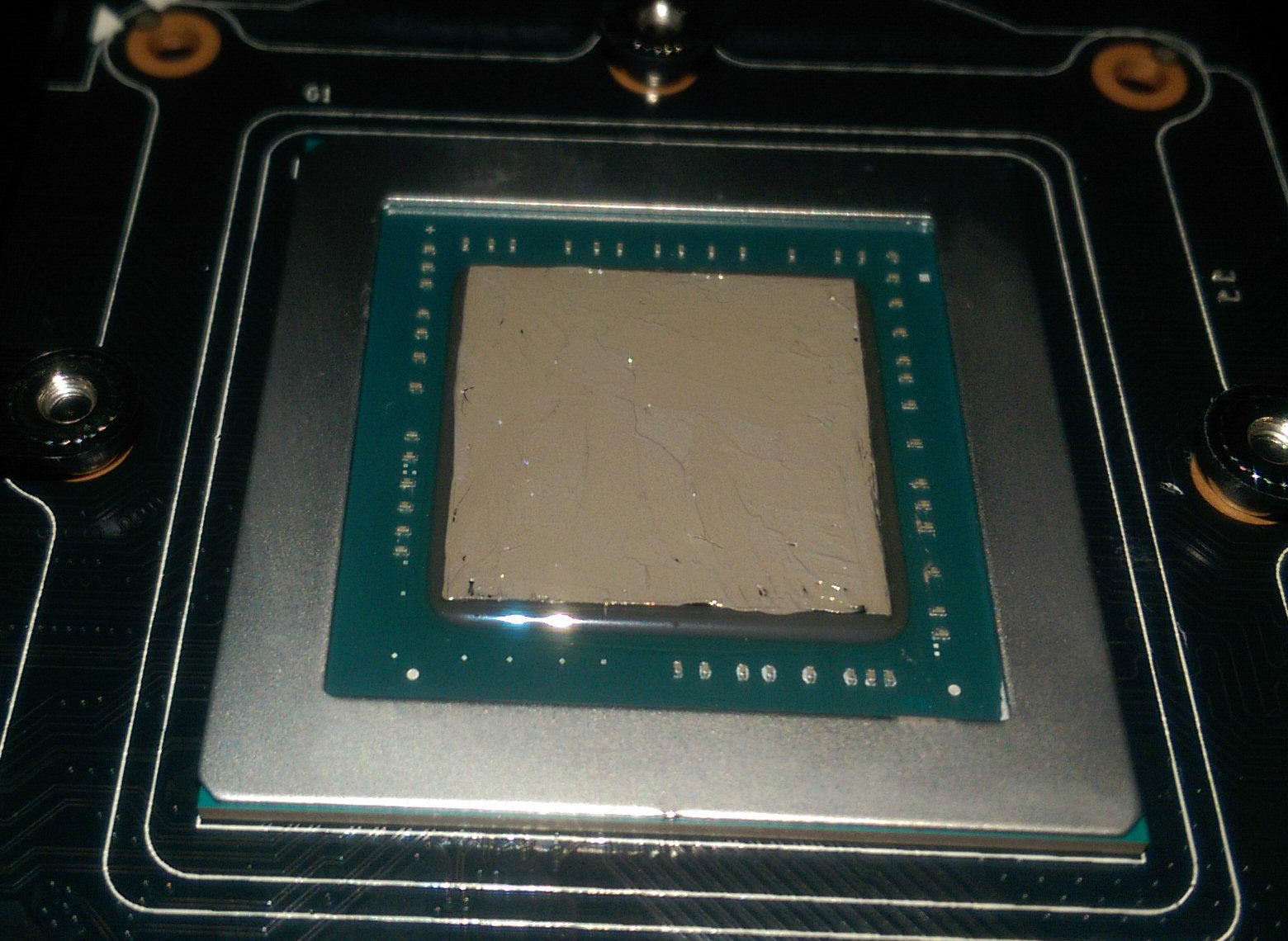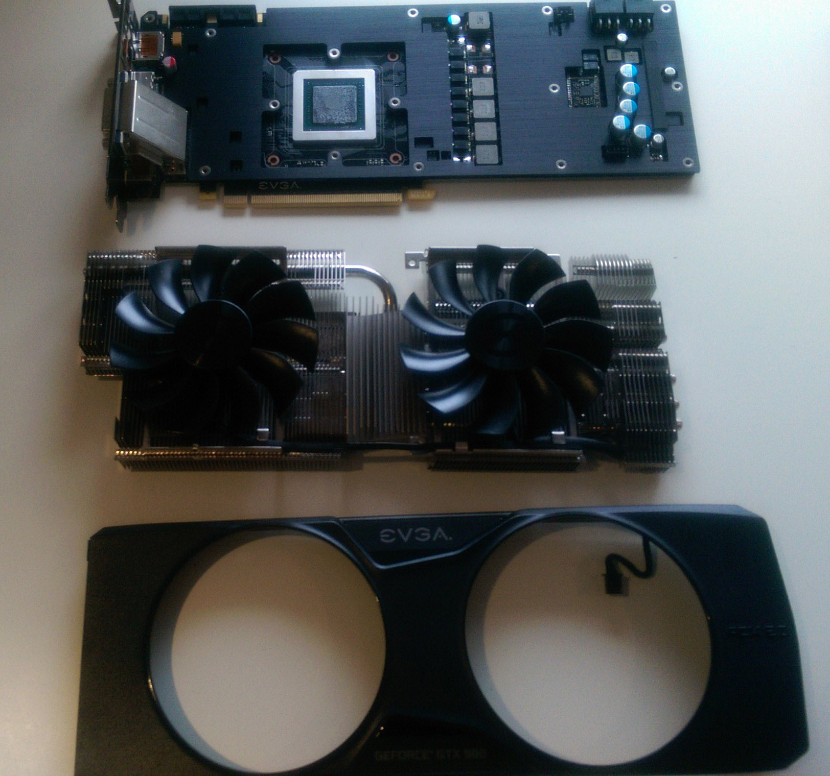 Eventually, I had to unscrew the heatsink from the board and permanently remove one of the EVGA decal stickers from the card just to get to all four screws. It took a frustrating couple of hours but I finally got to this point: