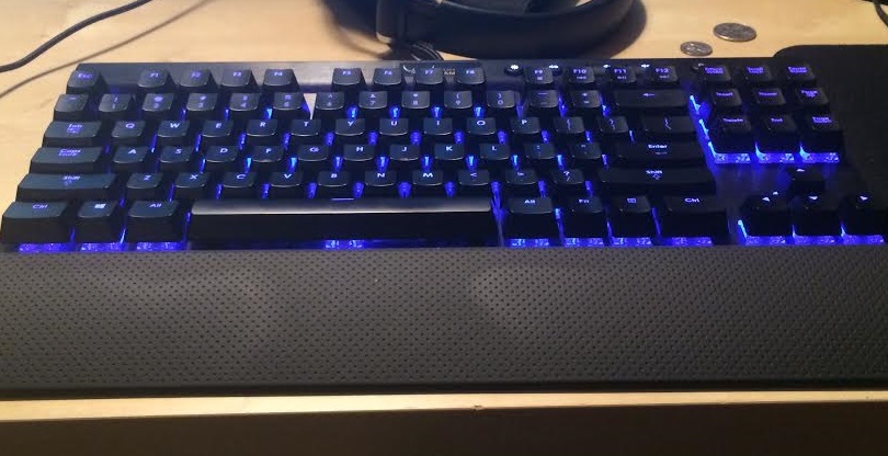 CUE aside, the K65 RGB has been a very unique experience for me in many ways. My previous keyboard of choice was a Razer Blackwidow Ultimate with Cherry MX Blues. While I do still love the loud tactile clicks, the MX RGB switches provide solid key presses that still feel tactile. Key presses are not loud clacks and the actuation force required is very low. These key switches, for me, are the ultimate non-compromise. I get the best of both worlds without waking up the entire house. Typing for extended periods of time was easy, and the keyboard does a very good job of keeping your palms comfortable whether you are gaming or typing for long sessions.