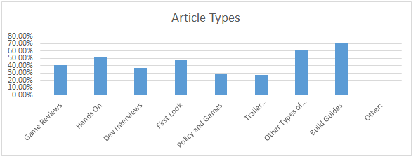 We aren’t solely a streaming website though, and more than half of you come to KBMOD for our articles. In particular, you really like our guides. The Build Guides are understandably the most popular, while the other generic other guides category was almost as popular. Considering that and your desired rate of content, it’s clear to us that you prefer longer articles that take a more in depth look at a topic, rather than a cursory overview that you can get anywhere on the web, like Polygon or IGN.