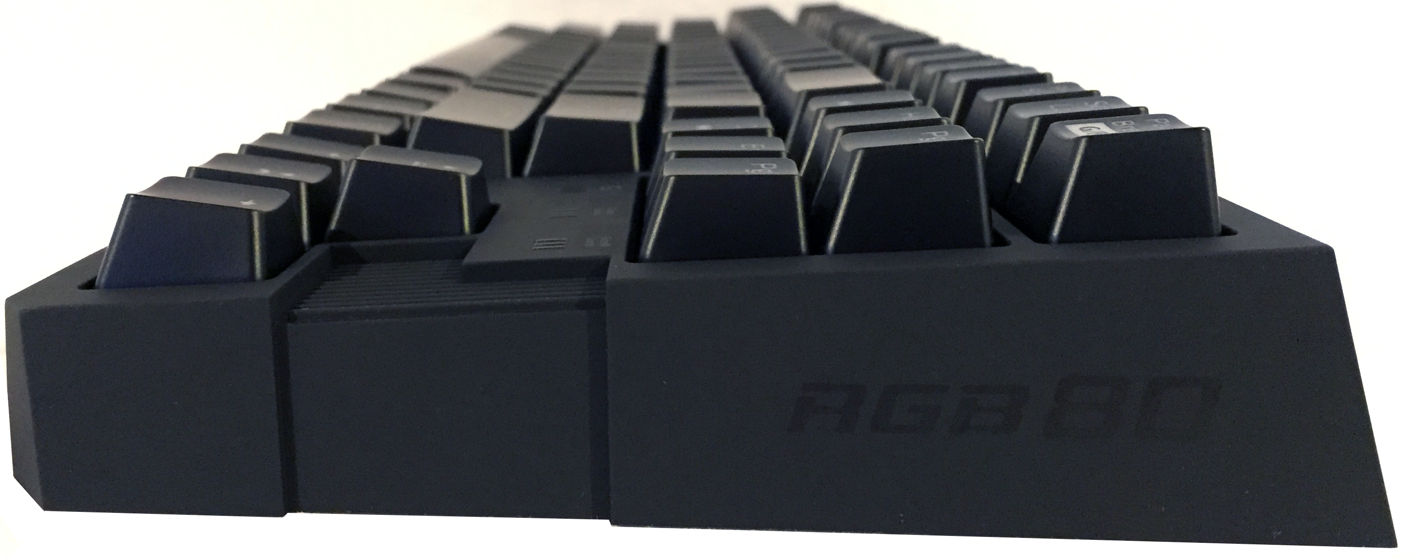 The overall build quality of the RGB80 is excellent – it’s a solid, angular block with sharp edges, wrapped in soft touch rubber. The keys have very little wiggle to them while resting above the Kailh blue mechanical switches. The RGB80 boasts RGB LEDs under each key, technically capable of 16.8 million colors. Whether you’re able to discern 16.8 million unique colors or not, well, that’s unlikely. For me, the backlighting alone is a welcome addition to the other keyboards that I use on a day to day basis.