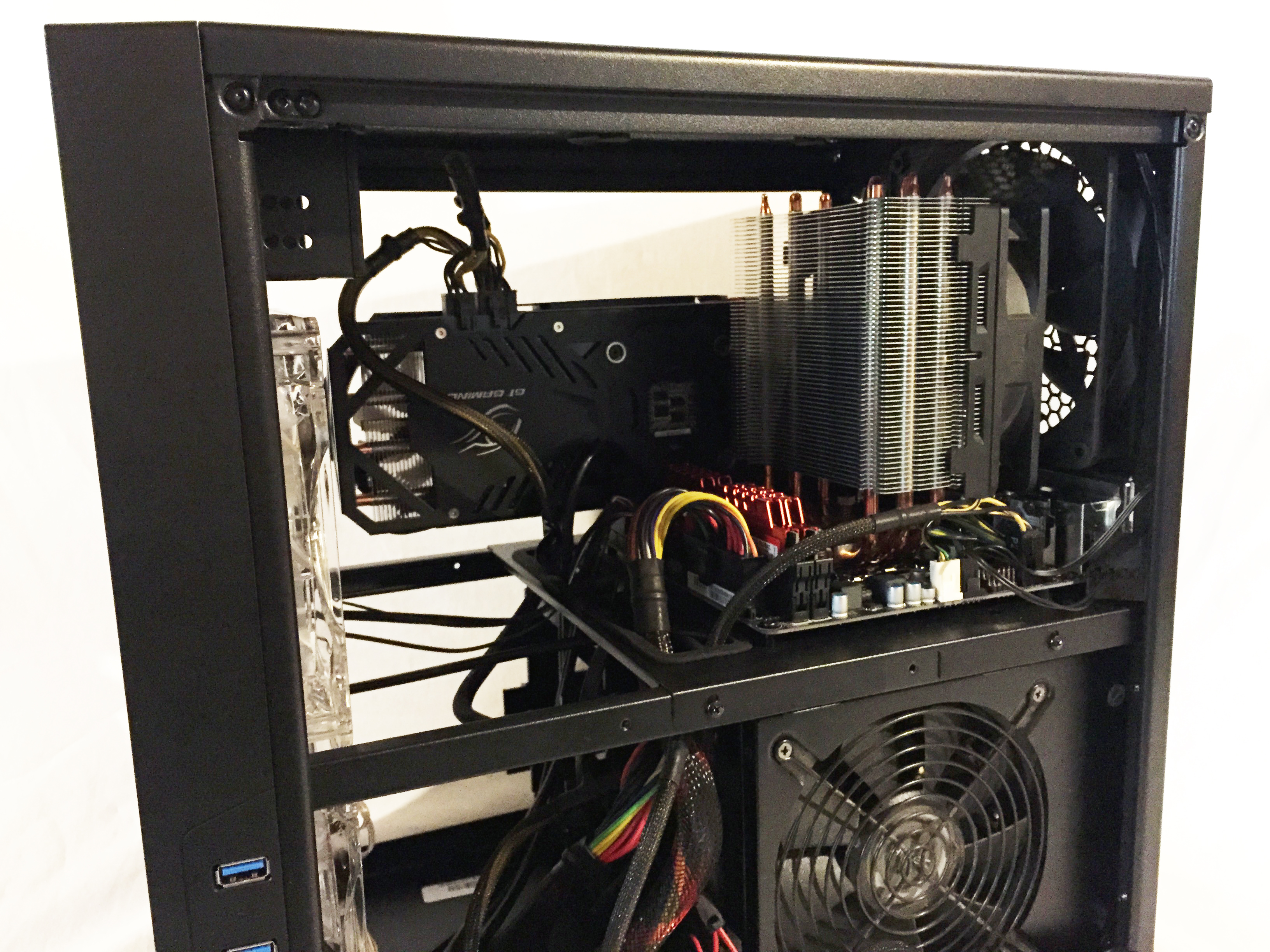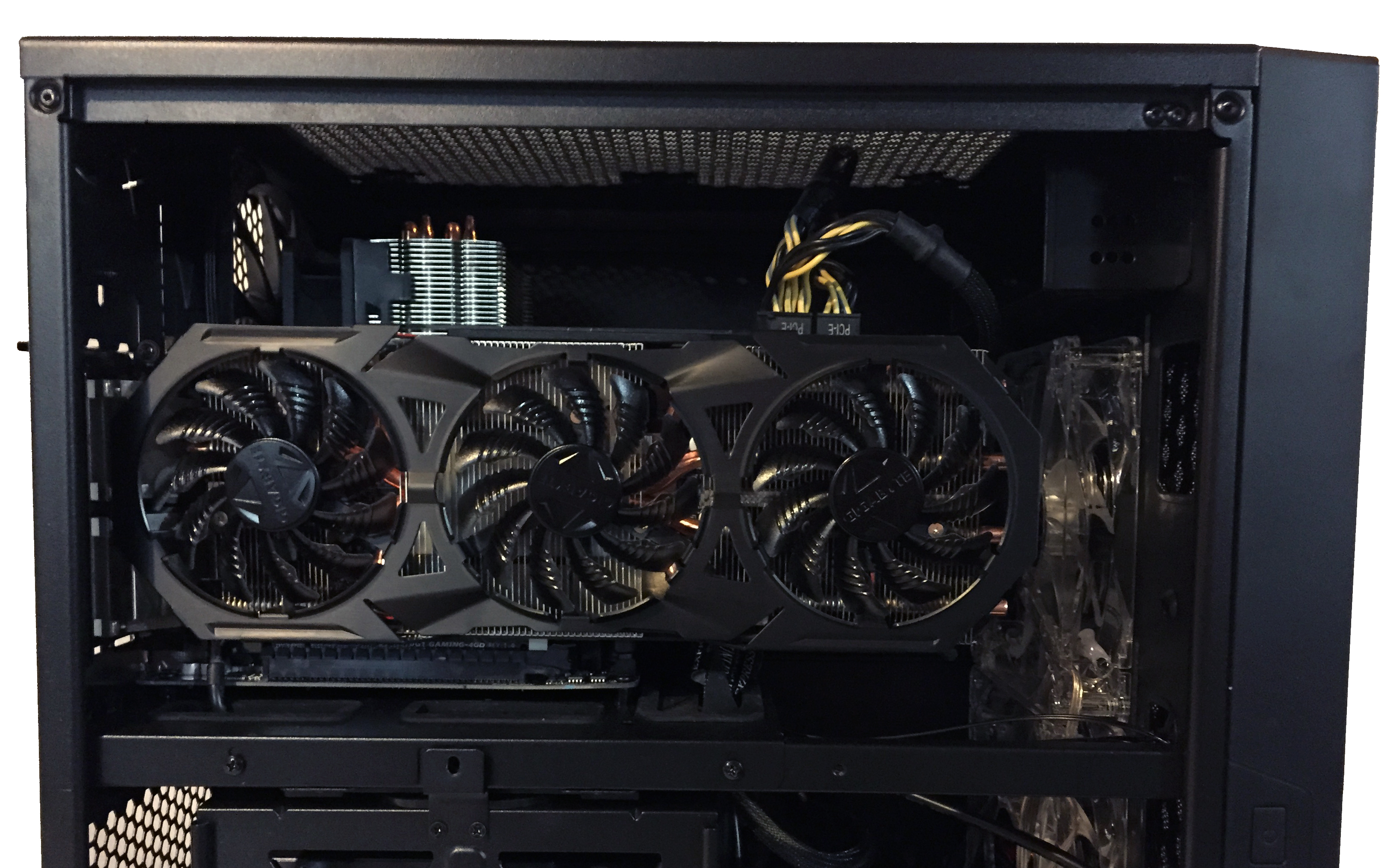 The Neutron can also accommodate even the lengthiest of GPUs. The longest at my disposal (which happens to be one of the longest on the market), is the Gigabyte GTX970 Gaming G1 at 12.28″ – as you can see below, it fits with room to spare.