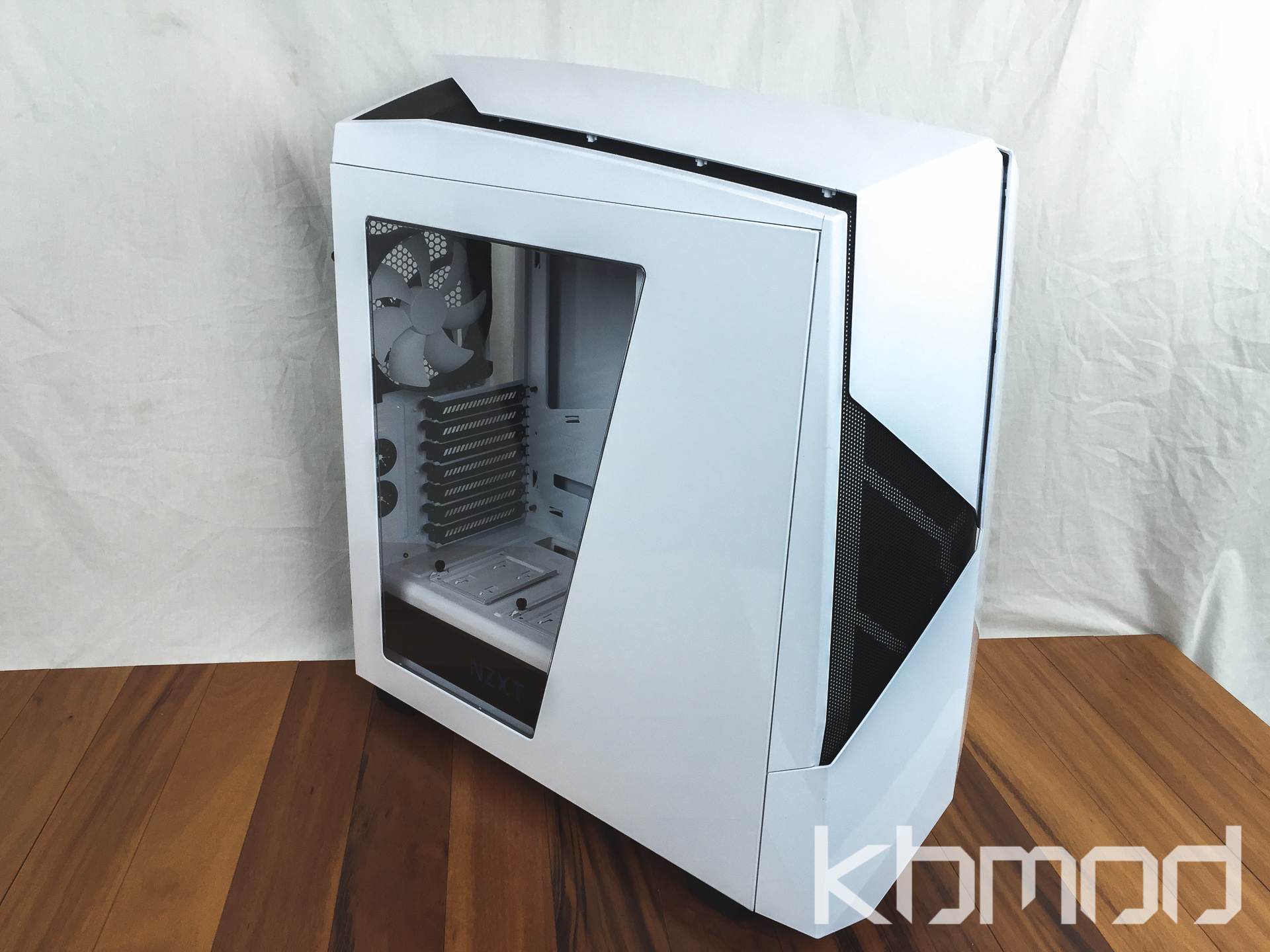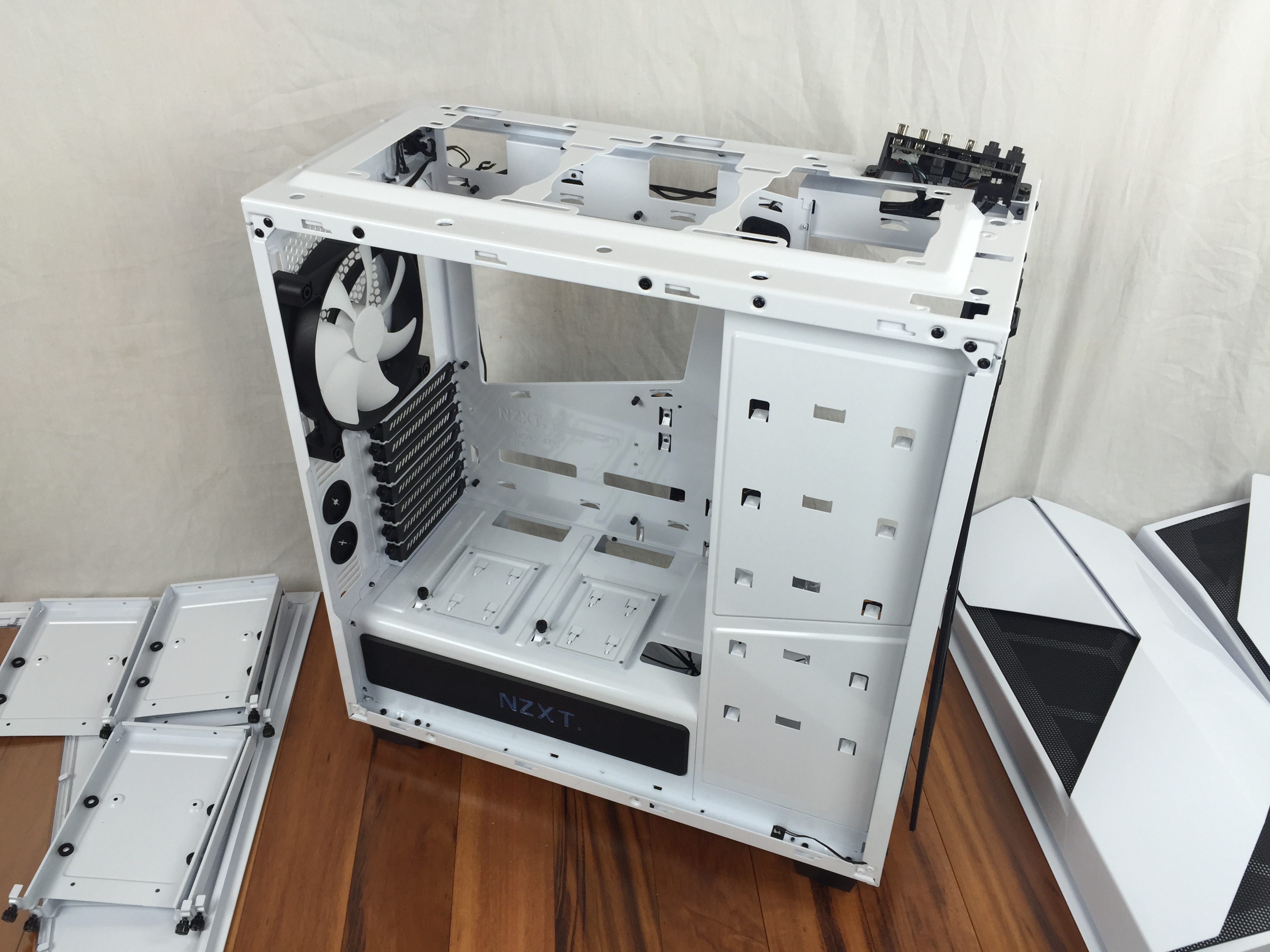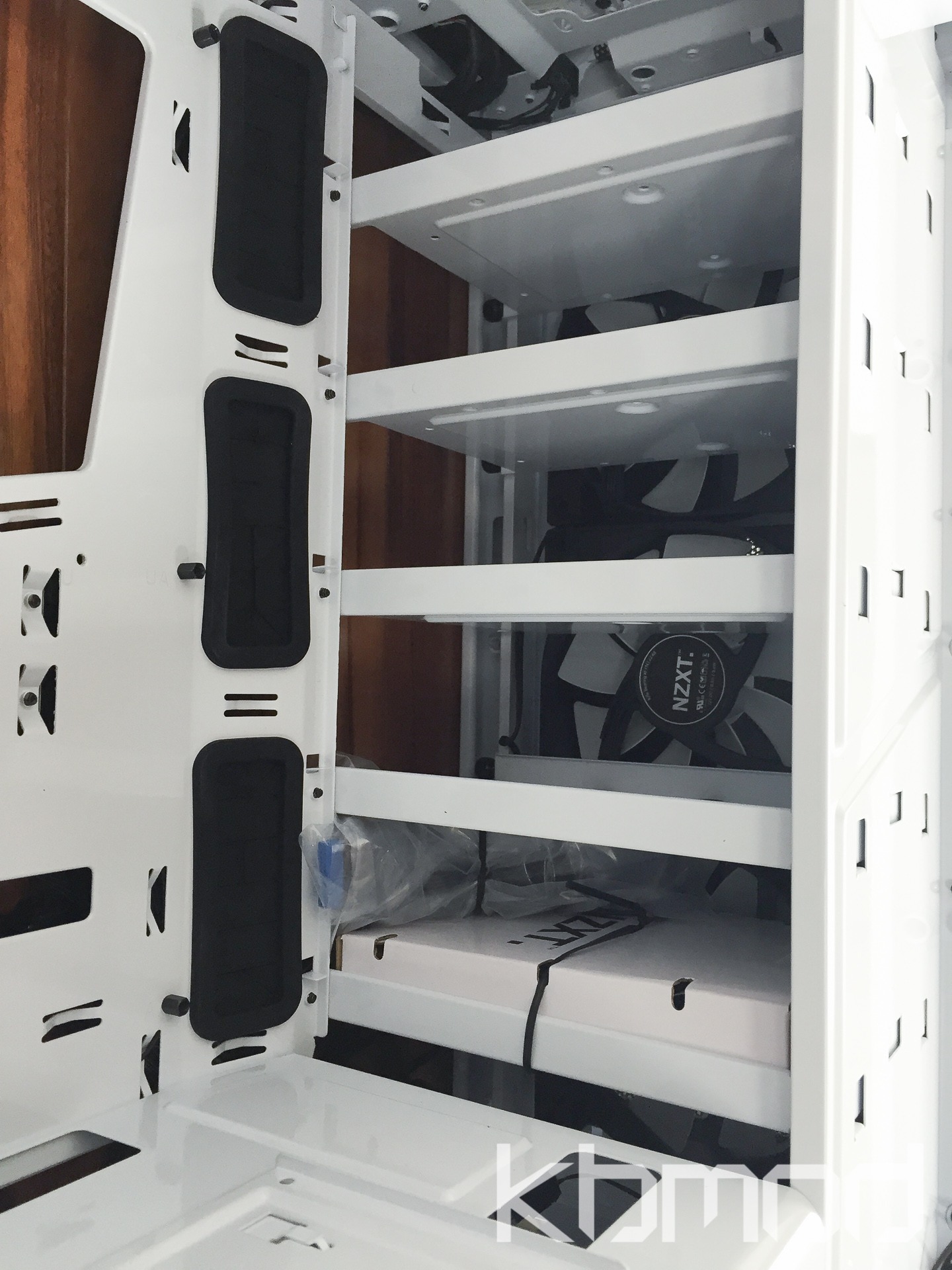 Floating interlocking ventilation panels dominate the exterior to provide both form and function along with a large trapezoidal acrylic window. Under the hood, you find virtually the same interior of the H440 and all of its wonderful niceties – it’s a rock solid foundation to one of the best cases I’ve had the pleasure of building in. For those unfamiliar with the H440, that means 3 120mm fans at the front (included), dual 140mm as an option, and room for up to a 360mm radiator. One bonus of the floating ventilation panels is realized at the top, where you have room to comfortably mount 2×120 or 2x140mm fans above in the “attic” – there is a third mount point at the front that may or may not suit your clearance needs for a fan. If you were to use a 360mm radiator, you’d likely want to mount that above in the “attic” and mount the fans below in the interior of the case in a push configuration. Moral of the story – there is plenty of space for radiators and fans to keep the beast within cool and quiet.