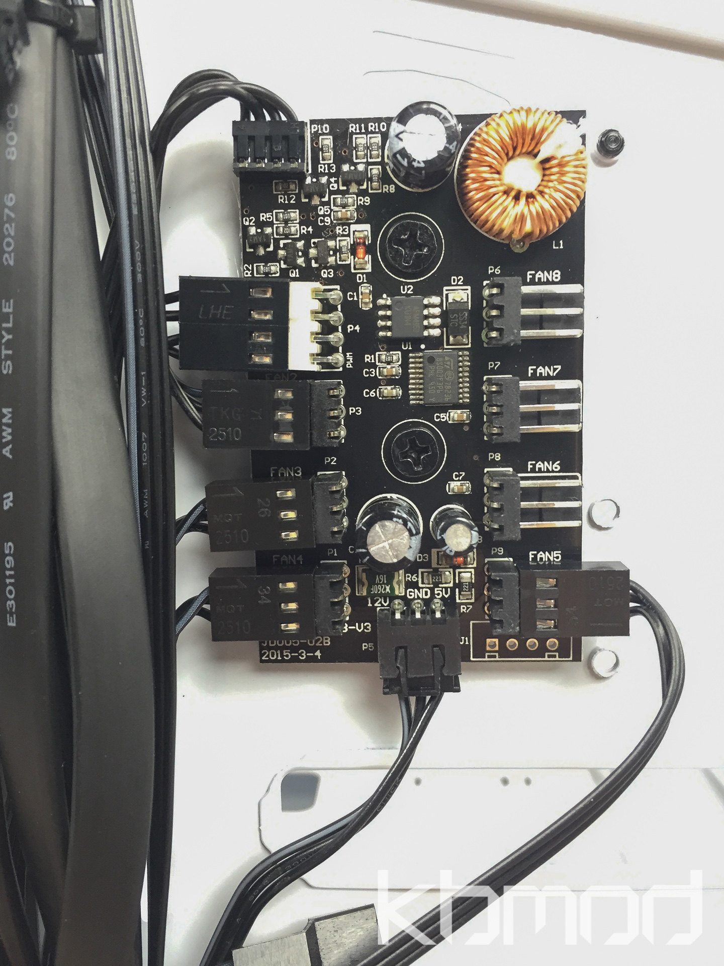 Moving on to the interior, the power supply shroud is an enviable feature for anyone without. It helps in keeping a build beautiful even without the best cable management skills. Its interior and back is roomy and forgiving for even novice (or hurried) builders while routing cables with the ample tie down spots on the back of the motherboard tray. The PSU shroud itself features a prominent LED-illuminated NZXT logo, and a pair of removable 2.5in drive trays. The Noctis 450 has room for an additional 6 drives, one at the bottom, and 5 in the aforementioned removable sleds at the front of the case. NZXT was kind enough to include 3x120mm fans at the front, and a 140mm at the back. All are connected to a PWM fan controller hidden behind the motherboard tray.