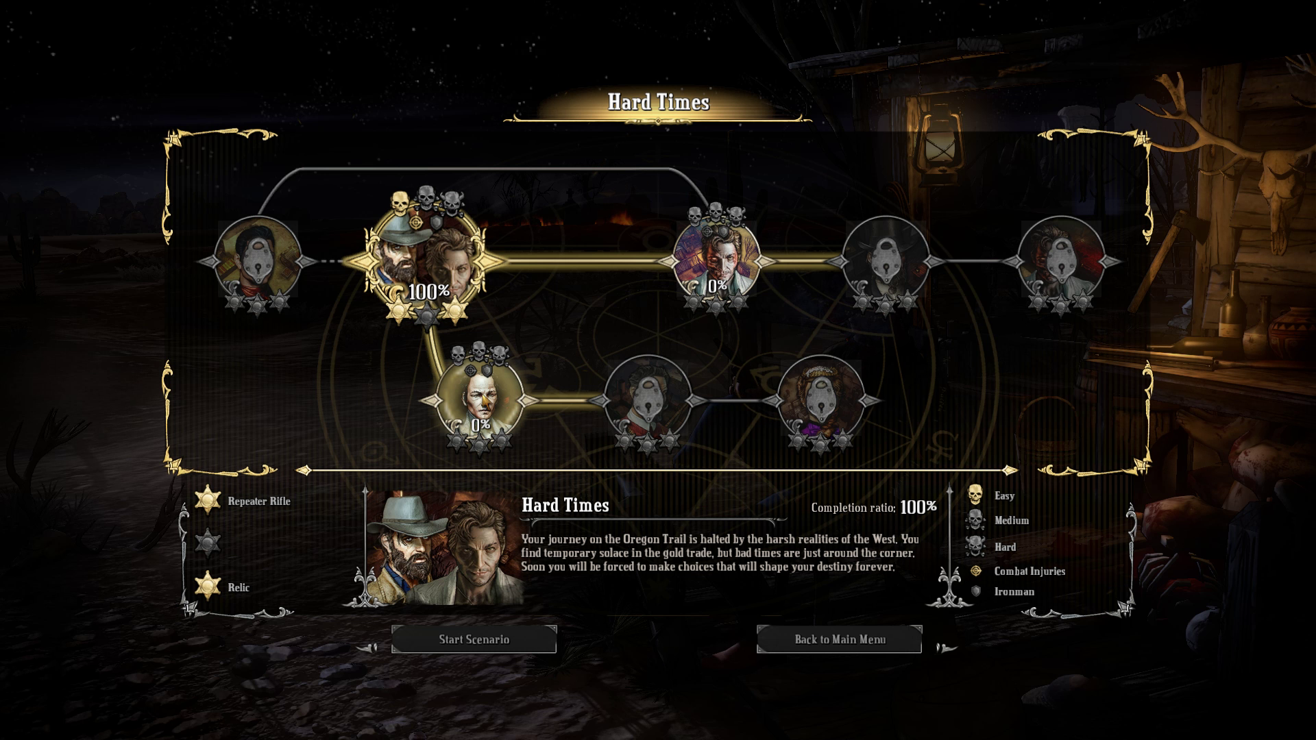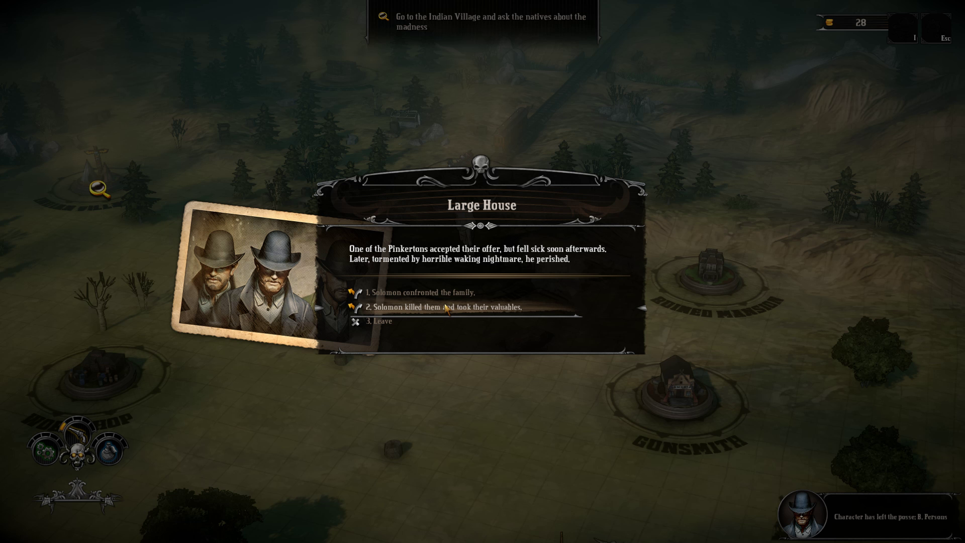 A large chunk of each scenario has a “choose your own adventure” type feel to them. Presenting players with a set of interesting, and often very dark, choices that they must make; some of those choices being a safe bet with minimal reward, while other choices give you promise of a greater reward but at a much greater risk to your character/posse. I ended up playing Hard West on normal difficulty and didn’t find the risks to my character so great that it deterred me from making this choice every time I had an opportunity to do so. Most of these rewards resulted in better weapons or trinkets for you to give to your posse, or just more gold which itself is used to acquires these items all the same. Unfortunately, this is the first spot where Hard West falls short and at the end of each scenario your character and posse are “reset”. I was extremely disappointed after starting my second scenario and found out that all the powerful weapons and trinkets that I worked for in my first scenario were just gone. This resulted in my disregard of some of the side missions in each scenario and asking myself “What’s the point if I don’t get to keep anything in the long run?”.