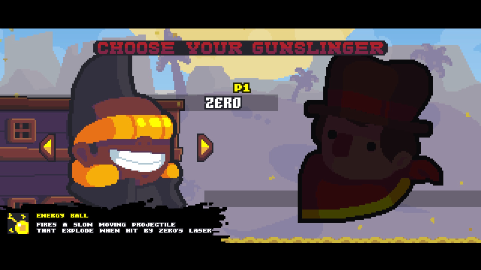 Like other action shooters, High Noon features a cast of characters that each tout their own abilities and benefits. You start with two characters: Wesley and Chik’n. Wesley has your typical cowboy’s revolver and a special ability which creates an explosion when used, allowing you to take out multiple enemies at a time if used correctly. Chik’n, an actual chicken, on the other hand is much faster and has a shotgun which fires 3 projectiles in a trident-like pattern. His special ability? He will retreat back into an egg form and “rehatch” after dying. The only catch is that once you hatch and come back from the dead, you have a lesser health capacity. Die too much and you’re only left with one heart, meaning if you’re hit, you’re dead.