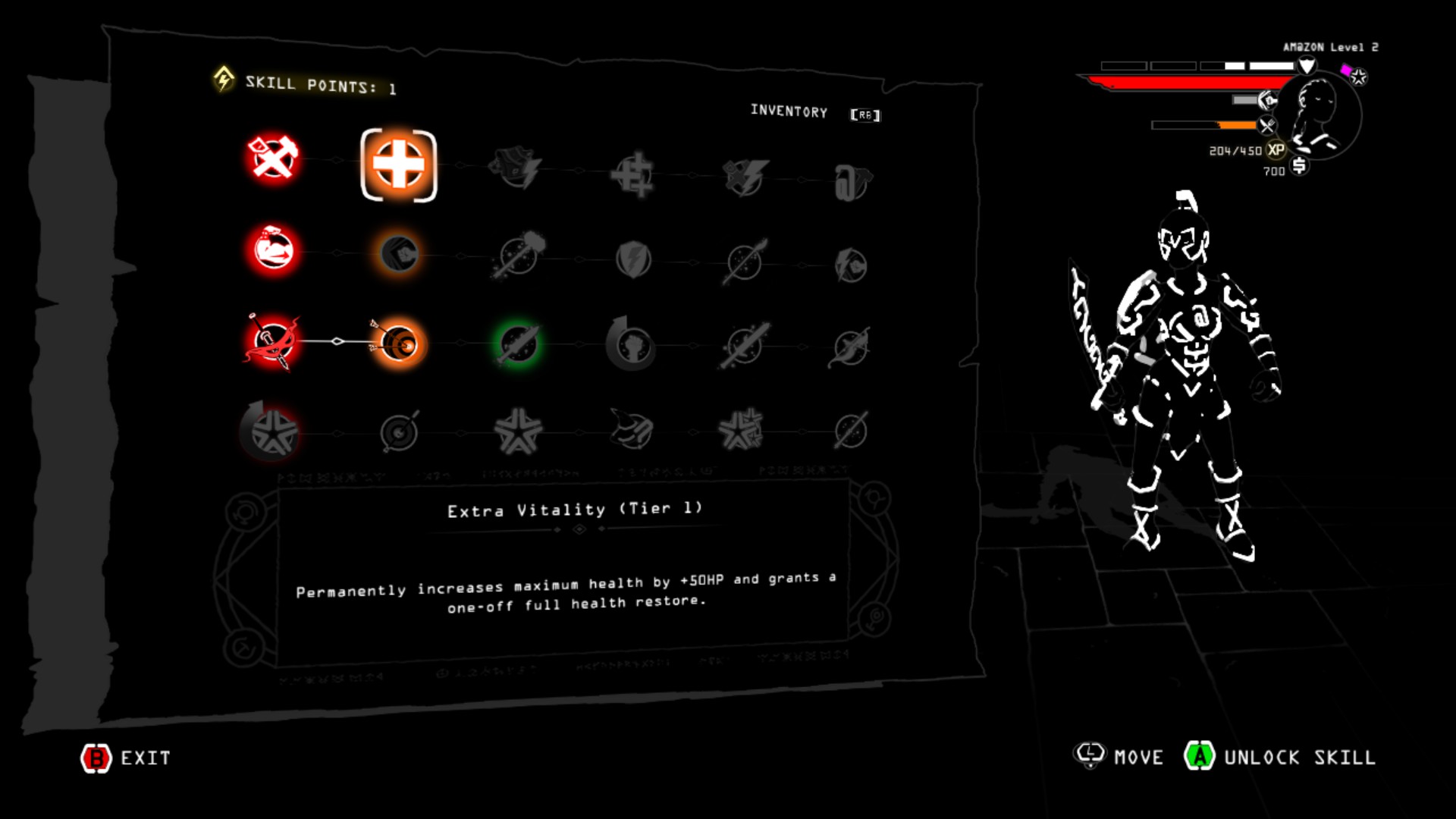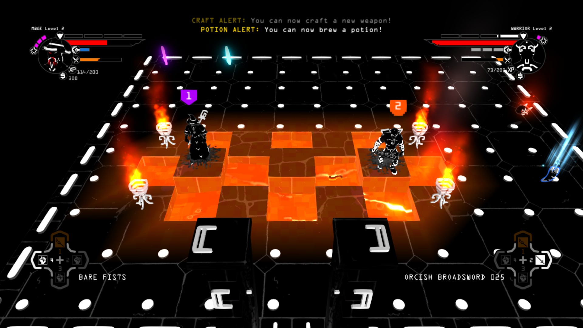 For those that would rather not adventure alone, Brut@l also has a 2 player co-op mode. Kicking ass and exploring dungeons is a lot more fun with a friend, but the game becomes harder. Not only do enemies become more difficult to kill, but you also have to share the food that you come across. Unfortunately, there is no online multiplayer. As I said about Overcooked, the game would greatly benefit from adding it in the future.